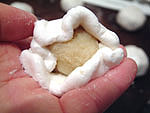 - Flatten one piece of dough into a 2 1/2 inch circle.