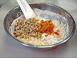 6. Add the sifted ingredients in about 3 parts to the mixture. Beat the batter after each addition until smooth.