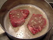 - Allow the steaks to brown on one side, then reduce the heat to medium-low. Cook for a few minutes.