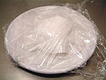 指で更に薄く直径8.5cm(3 1/2")くらいに広げる。 常にラップでカバーしておく。