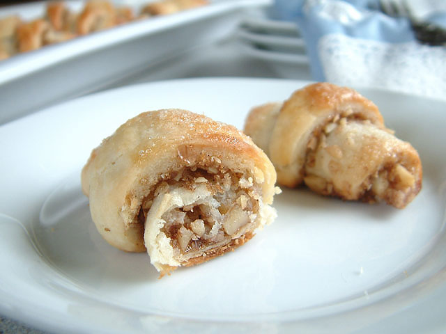 ここではナッツと黒砂糖のフィリングですが、これにおろした板チョコレートを振りかけてはさんでも美味しいです。 |