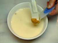 | (2)の牛乳と(4)の卵を混ぜる。 |