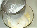 | (3)溶いた卵黄2個を4回に分けて加え、その都度、卵黄が均等に生地にいきわたるように混ぜる。 |