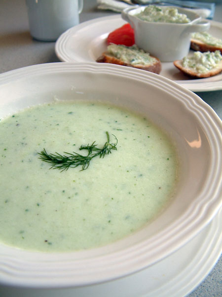 chopped dill into soup. Salt and pepper to taste. Chill in refrigerator